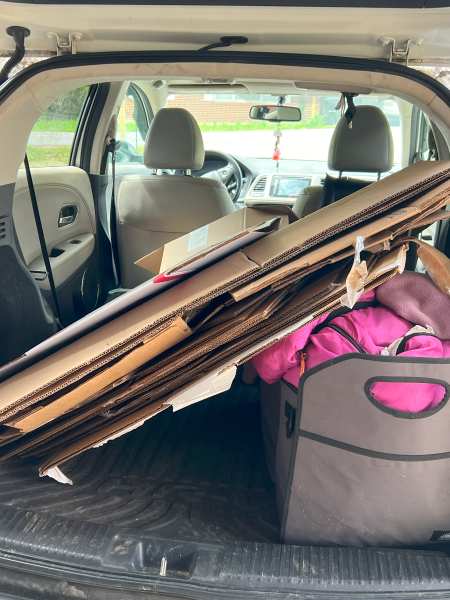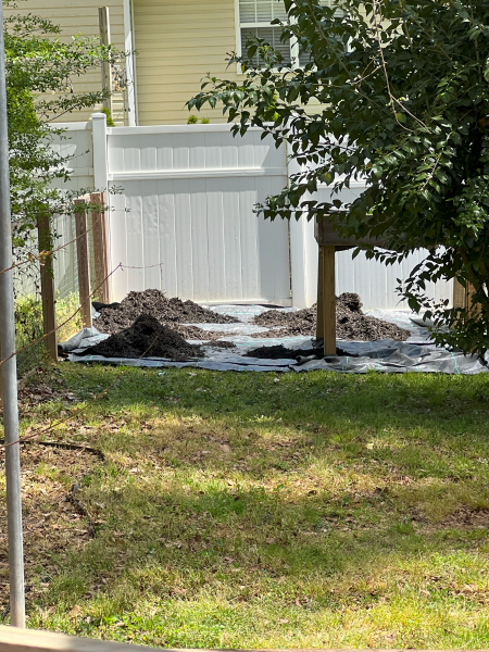 A few weeks in the past, a buddy and I constructed a pair extra standing beds. And I started overlaying sections of the yard with thick layers of cardboard (free from my native half time job) and landscaping material. As I’ve time, the vitality, and the funds, I’m going to cowl these areas with mulch. I’m additionally waiting for mulch gross sales.